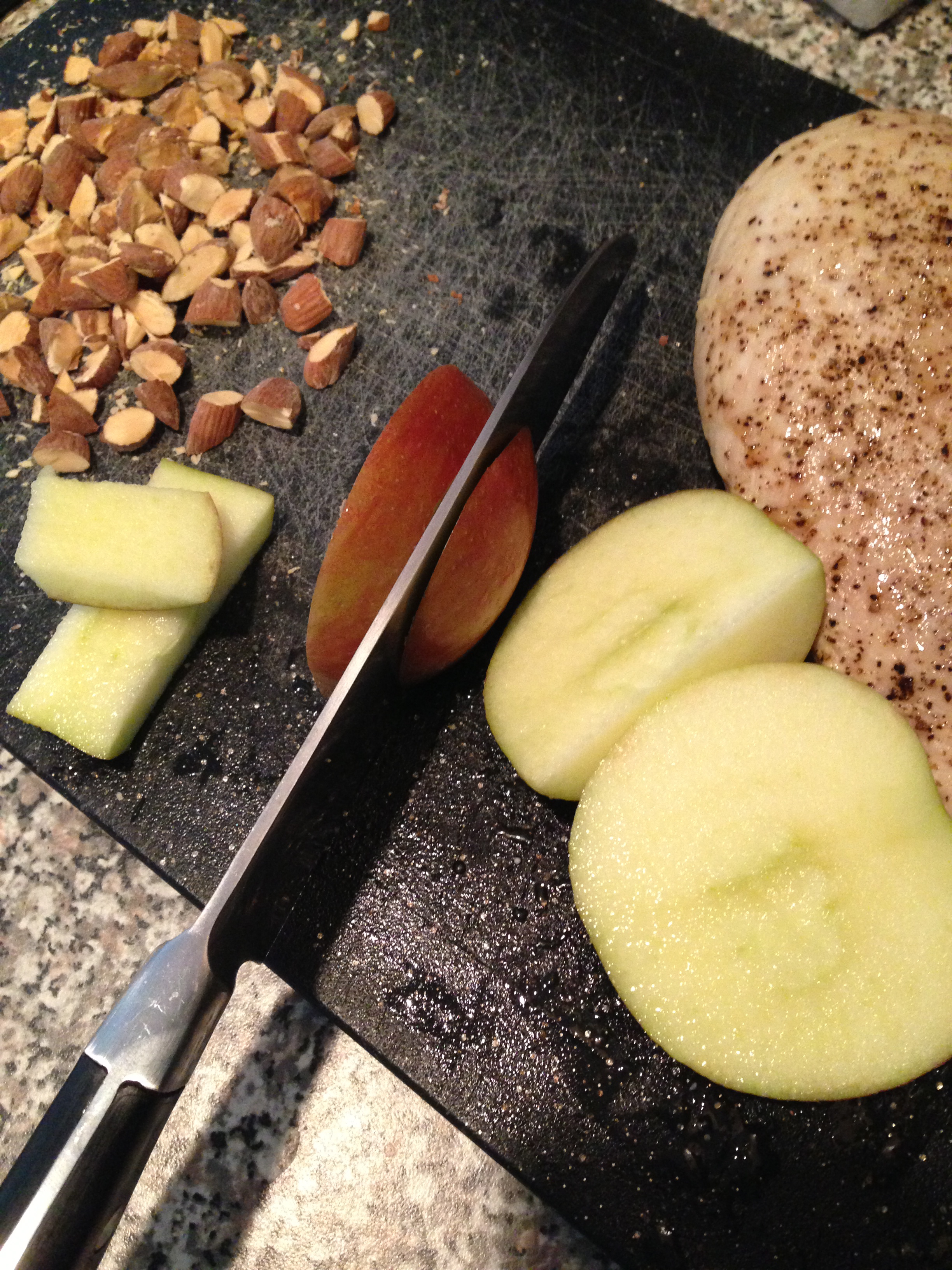 1 apple (fuji, gala, whatever is on sale that isn’t too sweet or tart)