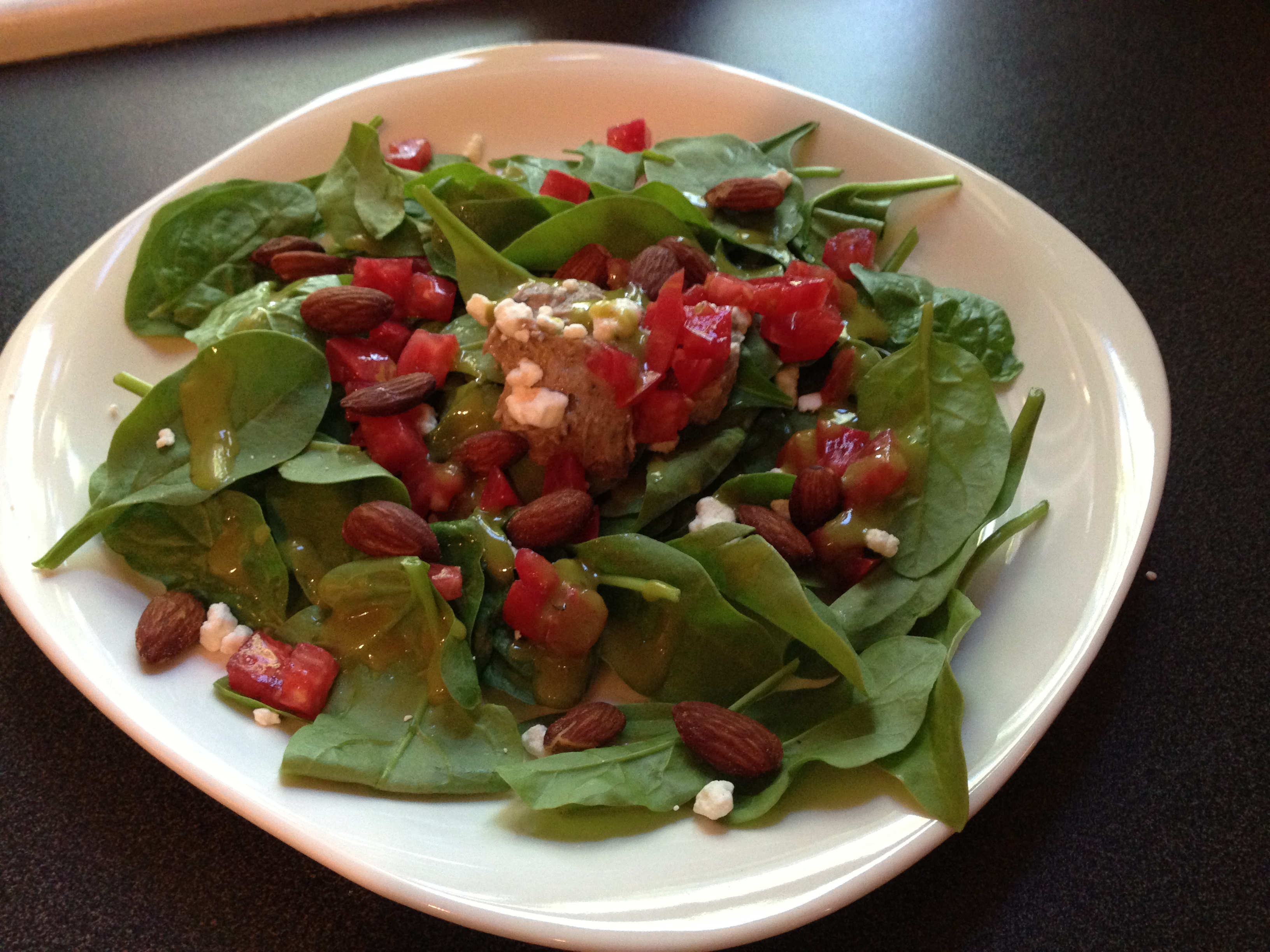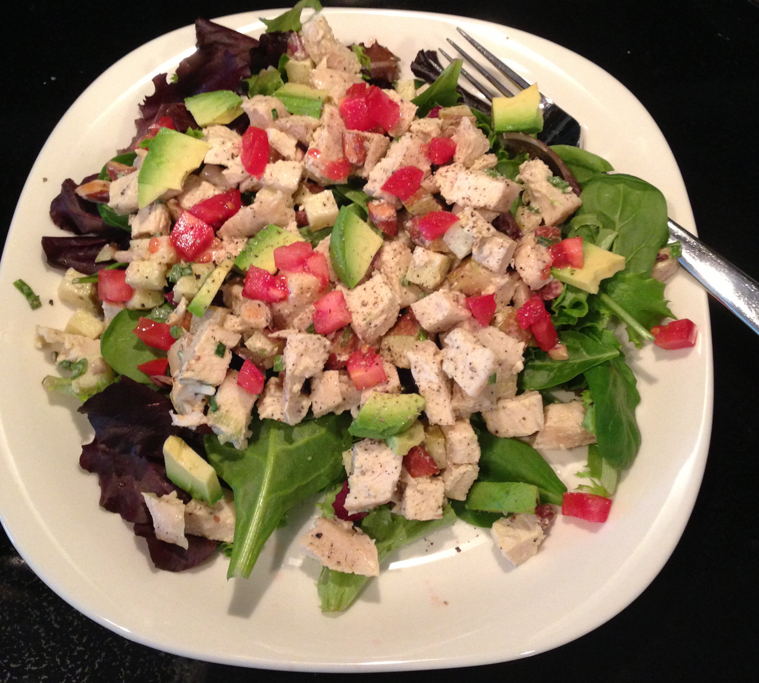 I work from home several days each week so I’m always experimenting with quick, easy, healthy lunches.  This is one of my favorites, it’s basically a salad I created using the items I always have on hand and it literally takes about 5 minutes to put together.
